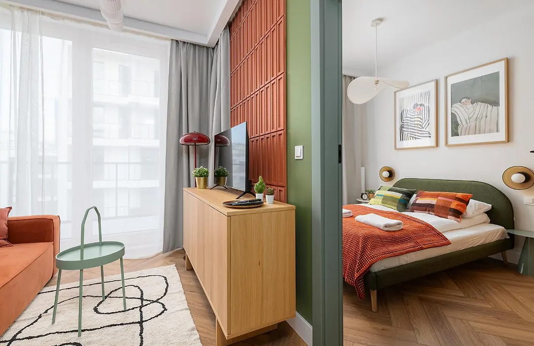 Do dyspozycji gości jest również aneks kuchenny, a także piekarnik i zmywarka do naczyń. W zasięgu wzroku do stacji kolejowej Warszawa Centralna.